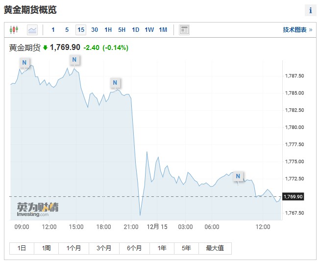 由于美国通胀居高不下,市场普遍预期美联储将在即将到来的12月利率会议上宣布加速缩减购债、乃至进一步释放加息的信号,金价应声下跌。